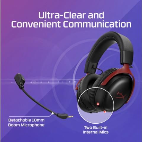 ไมโครโฟนบูมขนาด 10 มม. ถอดได้ มี ไฟ LED แสดงสถานะปิดไมค์ และฟิลเตอร์ตาข่ายในตัว ช่วยให้เสียงสนทนาชัดเจนทั้งการแชทและการโทร ใช้งานได้ทั้งโหมด 2.4GHz และ Bluetoothแข็งแรง ทนทาน พร้อมลุย