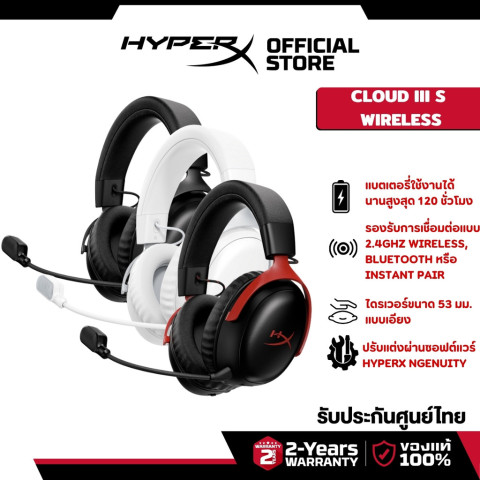 HyperX Cloud III S Wireless Gaming Headset (สีขาว / AX6G1AA) หูฟังเกมมิ่งไร้สายระดับตำนานที่ “วิวัฒนาการ” ขึ้นไปอีกขั้น ให้คุณเล่นยาวแบบไม่สะดุดด้วยแบตอึดสุด และเชื่อมต่อได้ยืดหยุ่นทั้ง 2.4GHz, Bluetooth รวมถึง Instant Pair สำหรับโน้ตบุ๊ก OMEN บางรุ่น—พร้อมเสียงทรงพลัง ตำแหน่งเสียงแม่น และความสบายตามมาตรฐาน HyperX สำหรับการเล่นเกมหรือสตรีมทั้งวัน