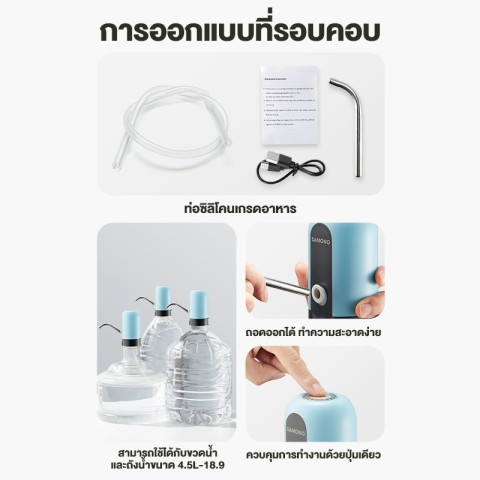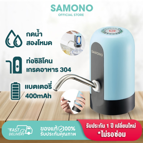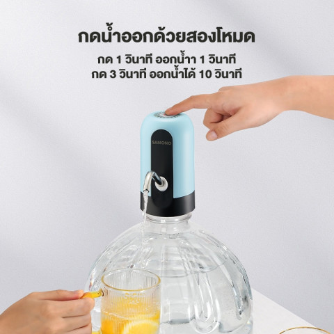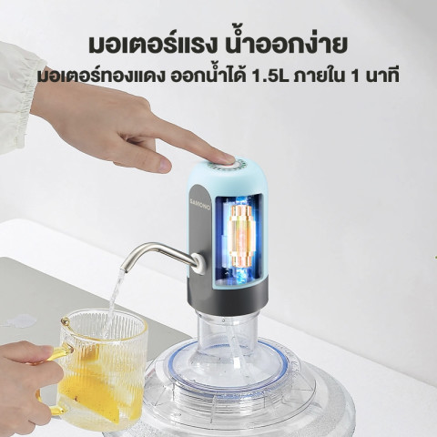 SAMONO เครื่องกดน้ำอัตโนมัติ รุ่น SW-EWP04 ตัวช่วยกดน้ำจากถัง/ขวดแบบไม่ต้องยกให้เมื่อย ใช้งานง่ายด้วยปุ่มกดขนาดใหญ่ มองเห็นชัด กดปุ๊บได้น้ำทันใจ เหมาะทั้งที่บ้าน ออฟฟิศ หอพัก หรือพกพาไปใช้นอกสถานที่ ด้วยขนาดกะทัดรัด ถอดล้างทำความสะอาดได้ และมอเตอร์เสียงเบา ไม่รบกวน