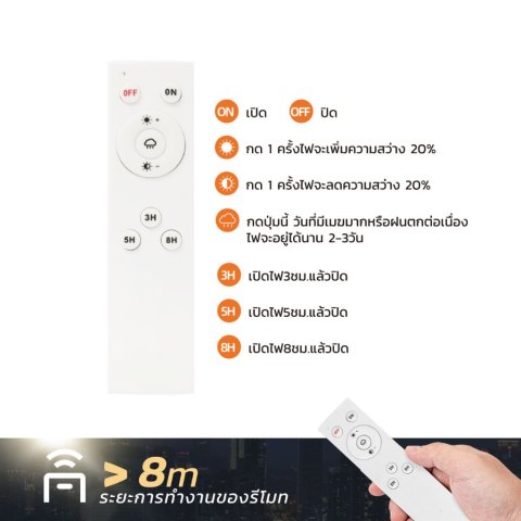 สีแสง: เลือกได้ทั้งแสงเหลือง 3000K หรือแสงขาวสว่าง (เหมาะทั้งตกแต่งและให้แสงใช้งานจริง)