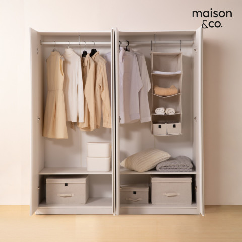 ด้วยขนาดประมาณ 160 x 57 x 180 ซม. ตู้เสื้อผ้ารุ่นนี้มอบพื้นที่จัดเก็บที่กว้างขวาง ทั้งแขวนและพับเสื้อผ้า แยกสัดส่วนได้เป็นระเบียบ พร้อมฟังก์ชันจัดเก็บที่สามารถปรับเปลี่ยนช่องเก็บของได้ตามการใช้งานของคุณ ไม่ว่าจะเป็นเสื้อเชิ้ต ชุดเดรส กางเกงลำลอง หรือชุดทำงาน ก็จัดเก็บได้อย่างเป็นระบบ