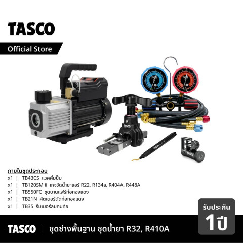 TASCO ชุดเครื่องมือพื้นฐานช่างแอร์ สำหรับน้ำยา R12, R22, R134a ราคา 12,955.00 บาท ชุดเดียวครบสำหรับงานติดตั้งและงานเซอร์วิสระบบปรับอากาศ เหมาะทั้งช่างมือใหม่และช่างมืออาชีพที่ต้องการเครื่องมือหลัก ๆ สำหรับการทำสุญญากาศ ตรวจวัดแรงดัน ตัด-บาน-ลบคมท่อทองแดง เพื่อให้งานจบไว รอยต่อแน่น ลดโอกาสรั่วซึม และได้มาตรฐานงานช่างแอร์