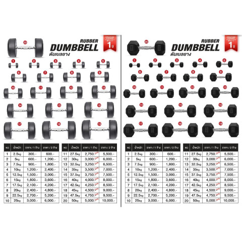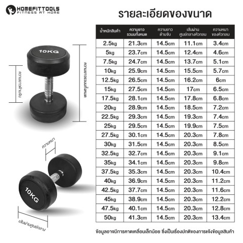 ช่วงน้ำหนักที่มีให้เลือก: 2.5 - 50 กิโลกรัม (เหมาะสำหรับมือใหม่จนถึงสายฟิตจริงจัง)