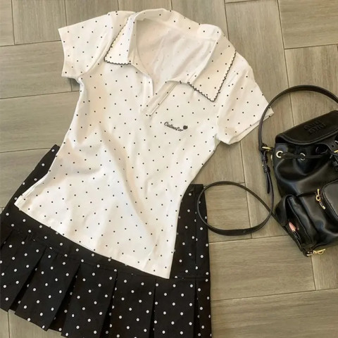 สไตล์อเมริกันวินเทจสีขาวเวฟจุด โปโลคอแขนยาว ไอเทมใหม่สำหรับฤดูใบไม้ร่วง–ฤดูหนาว ที่ผสมความหวานกับความเท่แบบวินเทจได้อย่างลงตัว โทนสีขาวพร้อมลายเวฟจุดช่วยให้ลุคดูละมุนแต่มีลูกเล่น ดีไซน์ทรงพอดีตัวช่วยเก็บทรงและเน้นสัดส่วนให้ดูเพรียว เหมาะทั้งวันทำงาน วันเรียน หรือออกไปคาเฟ่ก็แต่งง่ายแบบไม่ต้องคิดเยอะ