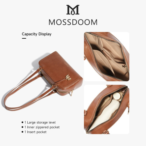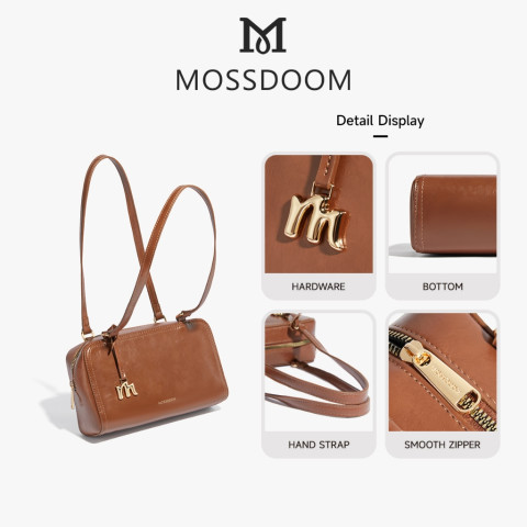 MOSSDOOM Reyna Bag กระเป๋าสะพายไหล่โทนพาสเทลพร้อมจี้ห้อย ดีไซน์เรียบหรูแต่มีลูกเล่น น่ารักกำลังดี เหมาะทั้งวันทำงานและวันสบายๆ มาพร้อมงานวัสดุหนัง PU ที่ดูดี ดูแลง่าย และน้ำหนักเบา พกพาคล่องตัวทุกวัน ในโทนสีที่เลือกคือ สีน้ำตาล ใส่แล้วแมตช์ชุดได้ง่าย มีความคลาสสิกแบบอบอุ่น