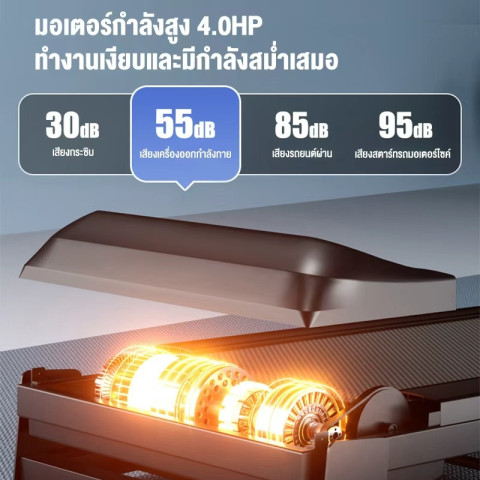 มอเตอร์ทรงพลัง 5 HP รองรับการวิ่งเร็วและการใช้งานต่อเนื่อง วิ่งได้ลื่นไหลไม่สะดุด พร้อมระบบลดเสียงและลดแรงสั่นสะเทือน เพื่อการใช้งานในบ้านโดยไม่รบกวนผู้อื่น