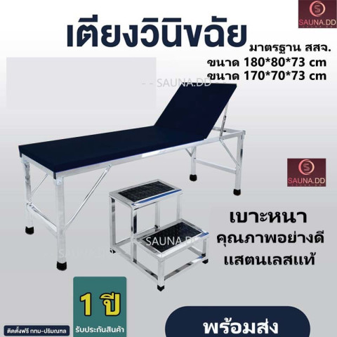 ขนาดเตียง: 180 × 80 × สูง 73 เซนติเมตร (ขนาดมาตรฐานสำหรับห้องตรวจทั่วไป)