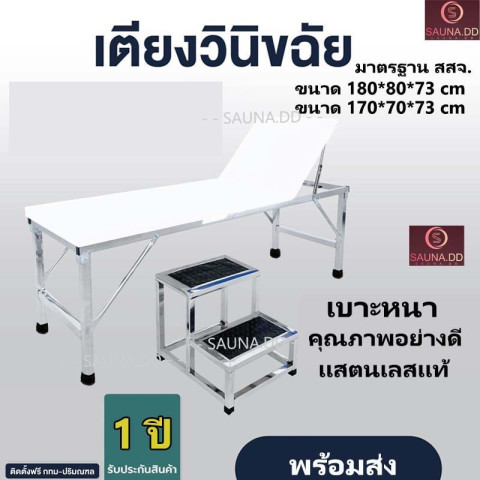 เตียงตรวจโรคทั่วไปสแตนเลส พร้อมบันไดขึ้นเตียง 2 ขั้น ในชุดเดียว