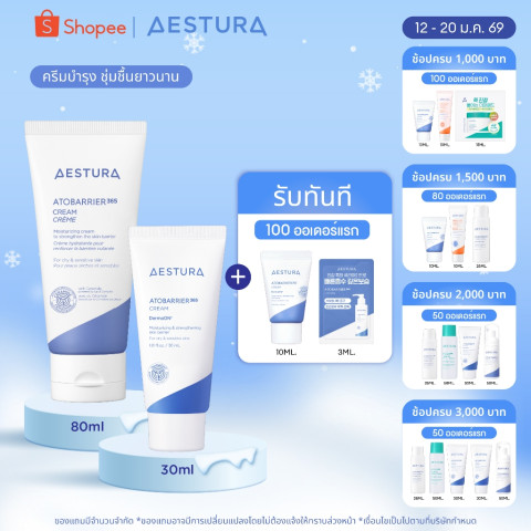 AESTURA Atobarrier365 Cream เอสทูร่า อะโทแบริเออร์365 ครีม ผลิตภัณฑ์บำรุงผิวหน้า (80ml Cream + 25ml Essence)