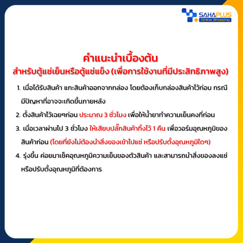 ตั้งตู้แช่ทิ้งไว้ประมาณ 3 ชั่วโมงก่อนเสียบปลั๊ก เพื่อให้น้ำยาทำความเย็นคงที่