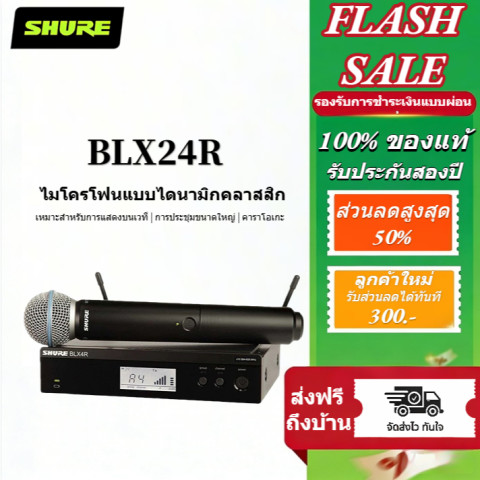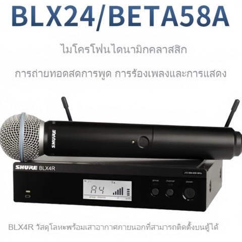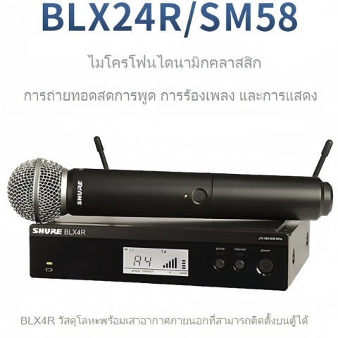 อัพเกรดงานเสียงของคุณให้มืออาชีพยิ่งขึ้นด้วย 【100% ของแท้】SHURE BLX24R SM58/BETA58A UHF ไมโครโฟนแบบถือเดี่ยวไร้สาย ชุดไมค์ไร้สายยอดนิยมสำหรับงานแสดงบนเวที การประชุม สัมมนา งานอีเวนต์ และงานพูดในทุกรูปแบบ มาพร้อมคุณภาพเสียงระดับสตูดิโอ ความเสถียรของสัญญาณ และดีไซน์ทนทานสไตล์ Shure ที่เชื่อใจได้