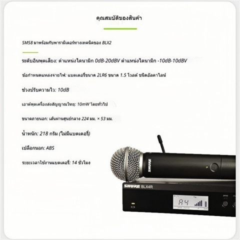 ข้อมูลไมโครโฟนมือถือ BLX2 พร้อมหัว BETA 58A/SM58