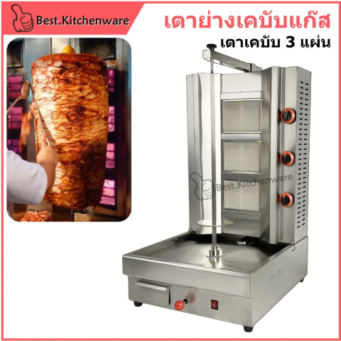 เตาย่าง เตาเคบับหมุนออโต้ 3หัว เตาเคบับแก๊ส หัวเตาอินฟราเรด ทางเลือกสำหรับร้านเคบับ/ชวาร์มาและงานย่างที่ต้องการความร้อนสม่ำเสมอ เนื้อสุกทั่วถึง ด้วยแกนหมุนอัตโนมัติ 360° และหัวเตาอินฟราเรด 3 แผ่น ช่วยกระจายความร้อนได้ดี ลดควัน เหมาะทั้งใช้งานจริงจังในร้านและงานอีเวนต์
