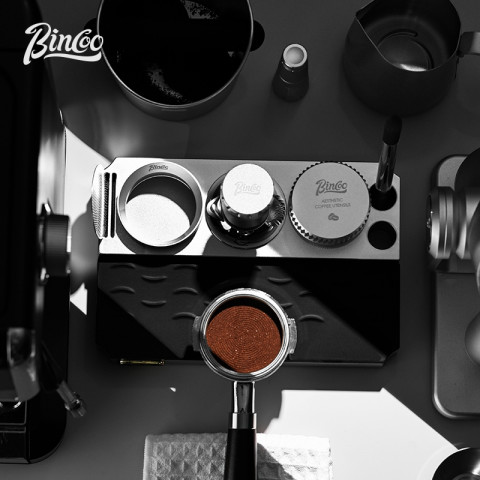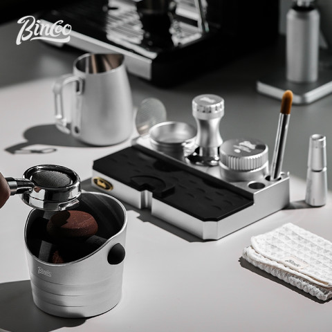 BINCOO Multi-Functional Powder Pressing Base & Dispenser อุปกรณ์เสริมสำหรับสายเอสเพรสโซที่ต้องการความเป็นระเบียบและความแม่นยำในการเตรียมช็อตกาแฟในทุกวัน รวมฟังก์ชันสำคัญไว้ในชุดเดียว ทั้งฐานกดผง ถังผงหลวม (Dosing Cup) และชุดเคาะกากกาแฟ (Knockout) ช่วยให้การจัดการผงกาแฟและสารตกค้างเป็นเรื่องง่าย ลดความเลอะเทอะบนเคาน์เตอร์ พร้อมยกระดับเวิร์กโฟลว์ให้คล่องตัวมากขึ้น
