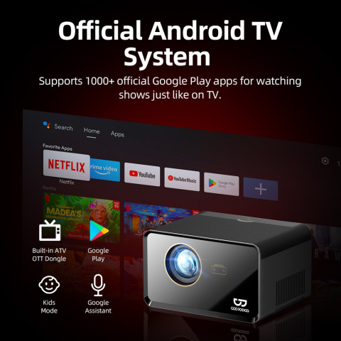 GOOJODOQ Projector 1080P Support 4K 600ANSI 300" โปรเจคเตอร์สมาร์ทตัวจริงแบบ “เสียบแล้วใช้ได้เลย” มาพร้อม Android TV ของแท้ ใช้งานแอปสตรีมมิ่งถูกลิขสิทธิ์จาก Google Play ได้ทันที ภาพคมชัดระดับ Full HD 1080P รองรับ 4K และความสว่าง 600 ANSI ให้ประสบการณ์ดูหนัง เล่นเกม หรือพรีเซนต์งานได้เต็มอารมณ์บนจอใหญ่สูงสุด 300 นิ้ว ในราคาคุ้มค่า 5,500.00 บาท