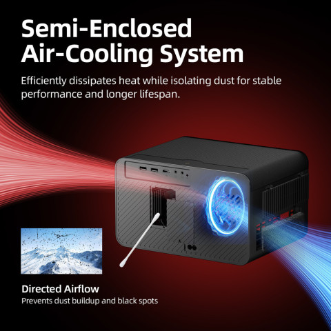 Auto Focus พร้อม Keystone อัตโนมัติแนวตั้ง ±30° และ 4-Point Keystone แบบอิเล็กทรอนิกส์ จัดภาพให้ตรงง่าย ได้ภาพคมไว ไม่ต้องปรับจุกจิกระบายความร้อนดี ลดฝุ่น ลดจุดดำในระยะยาว