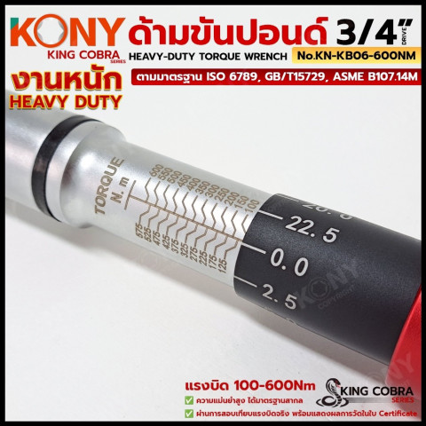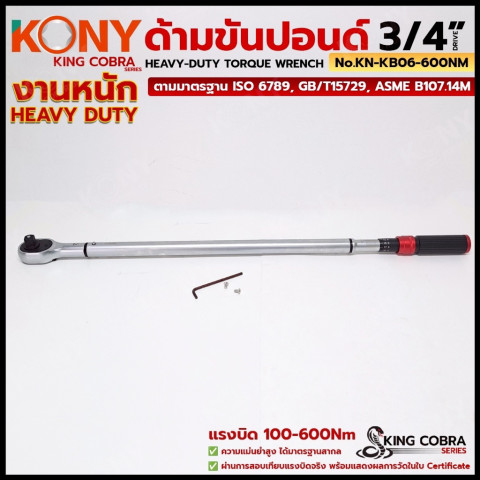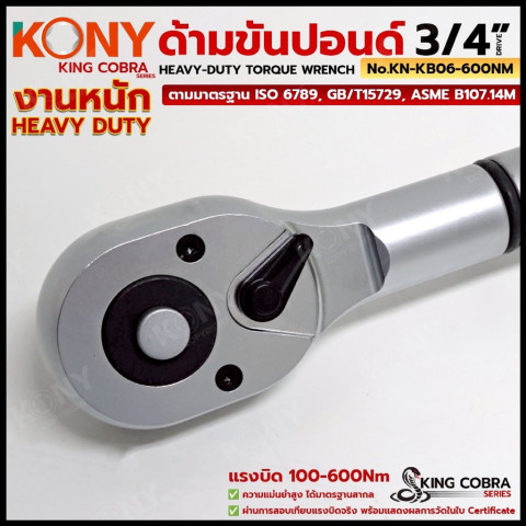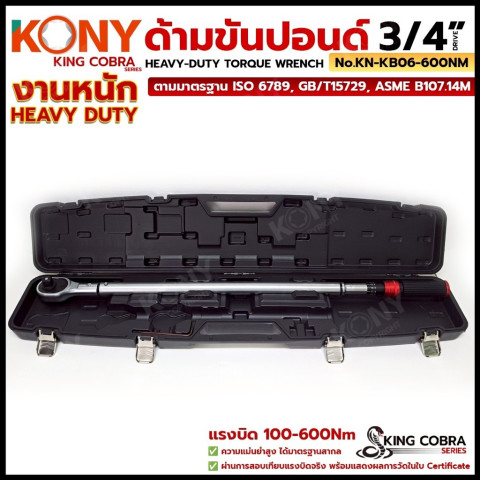 KONY ประแจขันปอนด์ 3/4" รุ่น Heavy Duty ซีรี่ส์ KING COBRA (No.KN-KB06-600NM) เครื่องมือสำหรับงานหนักตัวจริง ที่ให้แรงบิดสูงแบบควบคุมได้อย่างแม่นยำ เหมาะกับงานอุตสาหกรรม งานซ่อมบำรุง และงานช่างมืออาชีพที่ต้องการความเที่ยงตรง “แม่นยำทุกนิวตันเมตร” พร้อมลุยทุกจุดยึดแรงสูงอย่างมั่นใจ