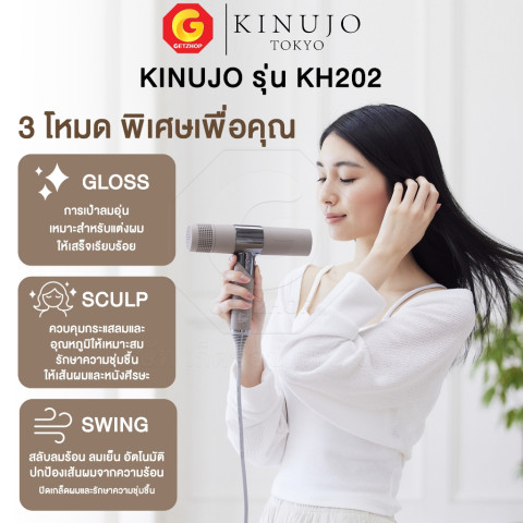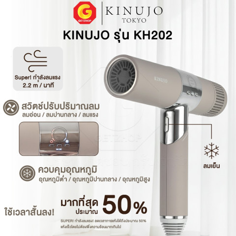Kinujo Hair Dryer รุ่น KH202 ไดร์เป่าผมยอดขายอันดับ 1 จากญี่ปุ่น ที่ตอบโจทย์คนอยากผมแห้งไวแต่ยังคงนุ่มสวย ไม่แห้งเสีย ด้วยเทคโนโลยีความร้อนยุคใหม่และมอเตอร์กำลังลมสูง ช่วยลดเวลาเป่าผมได้มาก พร้อมดูแลผมให้ไม่ชี้ฟู เหมาะทั้งใช้ที่บ้านและพกพาไปเที่ยว เพราะพับเก็บได้และน้ำหนักเบา