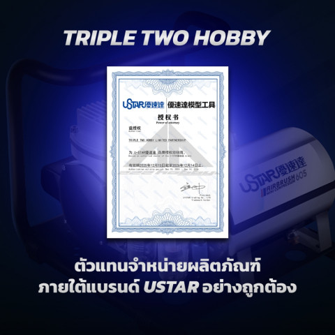 หมายเหตุ: ห้างหุ้นส่วนจำกัด ทริปเปิ้ลทูฮ็อบบี้ เป็นตัวแทนจำหน่ายสินค้าภายใต้แบรนด์ USTAR ประจำประเทศไทยอย่างถูกต้อง