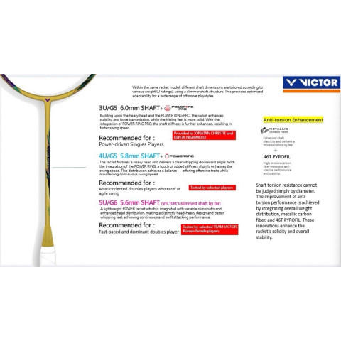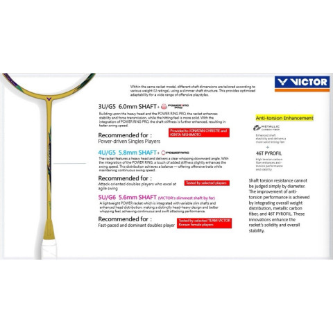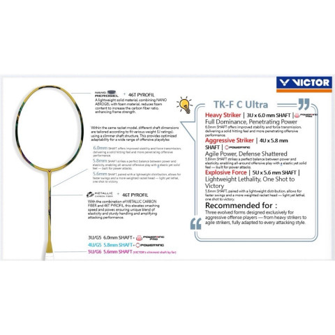 VICTOR THRUSTER TKF ULTRA X [3U/4U/5U] ไม้แบดตระกูล THRUSTER สายบุกที่ยกระดับ “ความนิ่ง” และ “ความคม” แบบรู้สึกได้ตั้งแต่ลูกแรก ด้วยเทคโนโลยีก้านแบบใหม่ที่ Ultra Slim เรียวพิเศษระดับโลก ช่วยลดแรงสะท้านและเพิ่มการควบคุม ขณะเดียวกันโครงสร้าง BOX FRAME ที่ขึ้นชื่อเรื่องพลังบุก ยังให้แรงปะทะหนักแน่น ตบได้มั่นใจแต่ไม่กระด้างมือ เหมาะสำหรับผู้เล่นที่อยากได้ไม้บุกที่ตีสนุก คม และสบายแขนกว่า BOX FRAME ทั่วไปอย่างชัดเจน