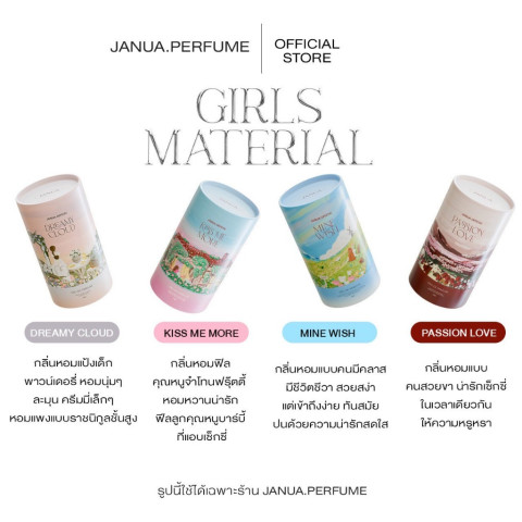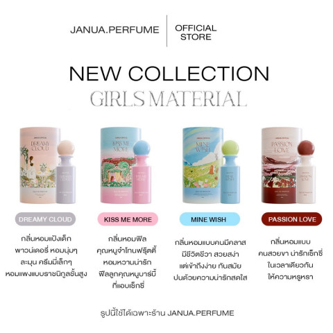 (รับประกันของแท้) น้ำหอมแจนยัวร์คอลเลคชั่นใหม่ Janua Girls Material น้ำหอมน้องอินจุน จากพาร์ทเนอร์บริษัทโดยตรง โปรคุ้ม 2 แถม 2 (ของแถมเป็นเทสเตอร์ 2ml x 2) กลิ่นหอมฟุ้ง กระจายตัวดี ใช้ได้ทุกวันตั้งแต่ทำงานไปจนถึงวันเดต ในราคา 397.80 บาท พร้อมบริการ ส่งฟรี และ เก็บเงินปลายทาง