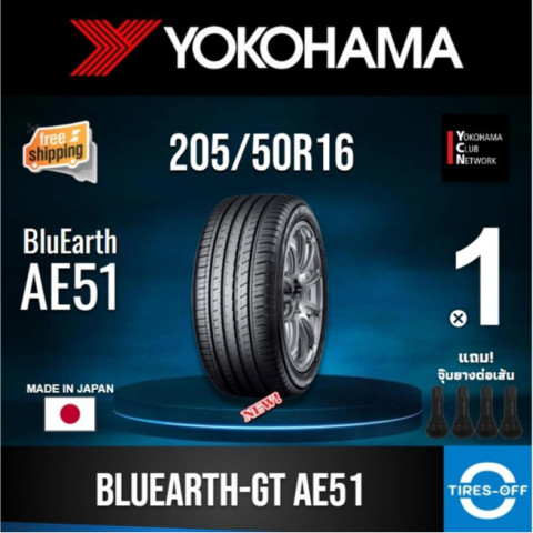 (ส่งฟรี) YOKOHAMA 205/50R16 รุ่น BluEarth-GT AE51 ยางใหม่ ปี2024 (1เส้น) มีรับประกัน แถมจุ๊บลม ราคา 2,470.00 บาท ยางสปอร์ตทัวริ่งพรีเมียมที่ออกแบบมาเพื่อการขับขี่นุ่มเงียบ เกาะถนนมั่นใจ และประหยัดน้ำมัน เหมาะสำหรับรถยนต์นั่งที่ต้องการสมดุลระหว่างความสบายและสมรรถนะในทุกวัน พร้อมส่งฟรีทั่วประเทศไทย ส่งตรงจากตัวแทนจำหน่ายโดยตรงจากโรงงาน มั่นใจได้ในคุณภาพและความใหม่ของสินค้า
