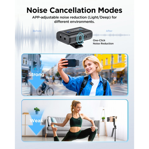 ตัวส่งสัญญาณมาพร้อมไมค์ในตัว และยังมี พอร์ตต่อไมค์หนีบปก (Lavalier) แบบมีสายสำหรับการเก็บเสียงแบบแนบเนียน ช่วยให้จัดวางไมค์ได้มืออาชีพยิ่งขึ้น ไม่ว่าจะถ่ายคอนเทนต์สั้น รีวิวยิงยาว หรือทำงานโปรดักชันที่ต้องการเสียงนิ่งและเชื่อถือได้