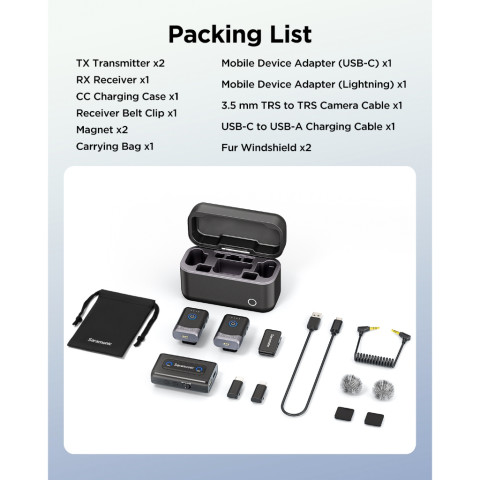 Saramonic Mix ไมโครโฟนไร้สายระดับมืออาชีพสำหรับครีเอเตอร์สาย Vlogging, ไลฟ์สด, สัมภาษณ์ และถ่ายทำวิดีโอด้วย iPhone / Android / DSLR ให้เสียงคมชัดเป็นธรรมชาติ พร้อมระบบตัดเสียงรบกวนและการส่งสัญญาณที่เสถียร เหมาะกับงานจริงทั้งในสตูดิโอและนอกสถานที่ ในราคา 5,230.16 บาท
