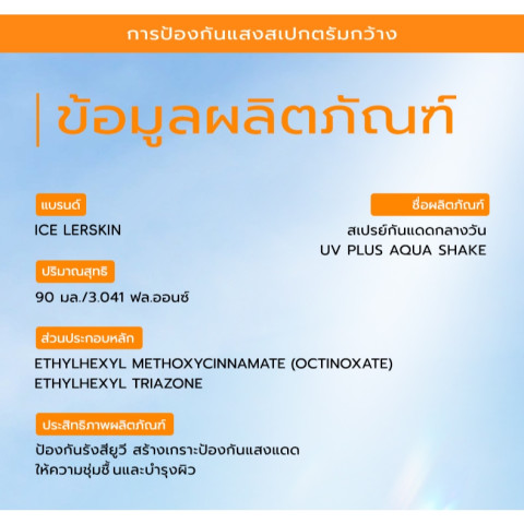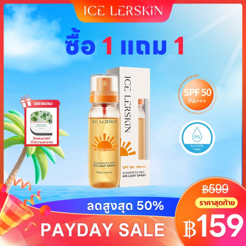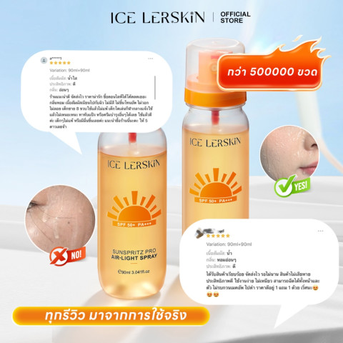 ICE LERSKIN สเปรย์กันแดด SPF50+ PA+++ (90ml) ไอเทมกันแดดสุดบางเบาที่ฉีดง่าย ซึมไว ไม่เหนียวเหนอะหนะ ปกป้องผิวจากรังสี UVA/UVB พร้อมคุณสมบัติ กันน้ำ กันเหงื่อ เหมาะทั้งผิวหน้าและผิวกาย ใช้ได้ทุกวันและเหมาะกับกิจกรรมกลางแจ้ง