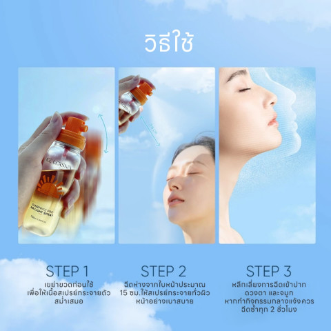 ฉีดซ้ำทุก 2 ชั่วโมง หรือหลังว่ายน้ำ/เหงื่อออกมาก เพื่อประสิทธิภาพสูงสุด
