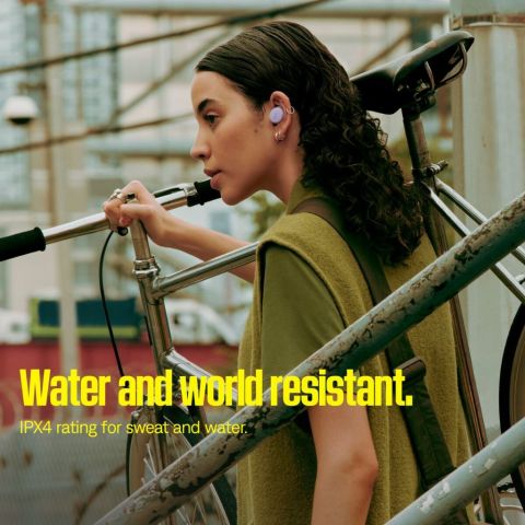 มาตรฐาน IPX4 ช่วยป้องกันน้ำกระเซ็น หยดน้ำ และละอองน้ำ เหมาะกับการใช้งานระหว่างเดินทางหรือช่วงออกกำลังกายเบาๆสวมสบาย กระชับ มั่นใจไม่หลุด