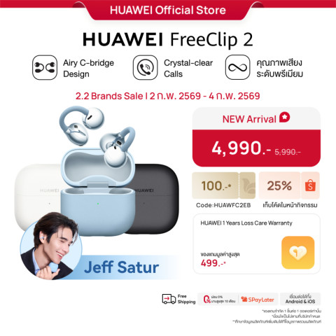 [2.2 - 2.4 | โค้ดลด 25%] HUAWEI FreeClip 2 หูฟังดีไซน์ Airy C-bridge Design น้ำหนักเบา ใส่สบาย พร้อมเสียงคมชัดและการสนทนาใสเคลียร์ เหมาะทั้งทำงาน เดินทาง และใช้งานตลอดวัน