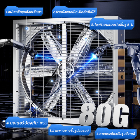 เหมาะสำหรับใช้งานใน: โรงงาน, คลังสินค้า, ฟาร์ม, โรงงานผลิต, อาคารอเนกประสงค์ หรือพื้นที่กว้างที่ต้องการการระบายอากาศอย่างมีประสิทธิภาพ