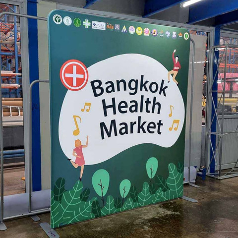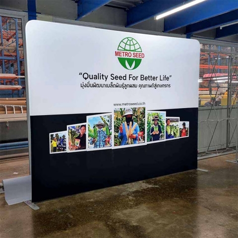 งานพิมพ์: รวมพิมพ์ 2 ด้าน (เหมาะกับบูธกลางพื้นที่/เห็นได้รอบทิศ)
