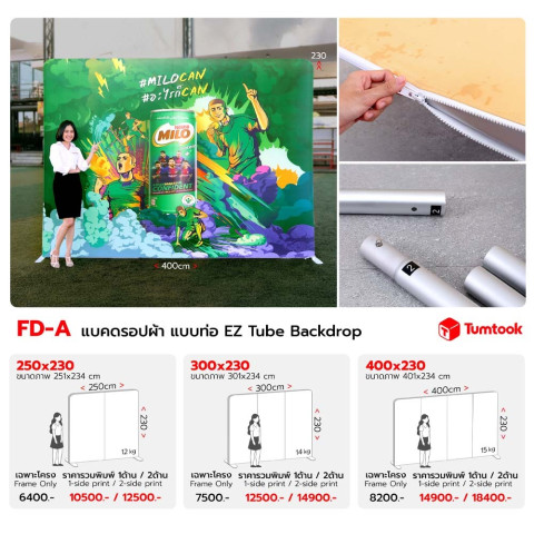 ยกระดับบูธให้ดูพรีเมี่ยมแบบมืออาชีพด้วย Premiere Backdrop แบคดรอปผ้าแบบท่อ (EZ Tube) ผืนใหญ่ ไร้รอยต่อ ช่วยให้ภาพลักษณ์แบรนด์ดูโดดเด่น สะกดทุกสายตา เหมาะสำหรับงานออกบูธ อีเวนต์ โรดโชว์ หน้าร้าน หรือถ่ายภาพโปรโมทสินค้า