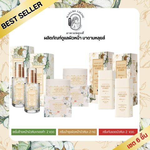 Madame Louise Snow Lotus 24K Gold Exfoliating Cleansing Serum & Brightening Soap Combo Set 120g 2-Pack ชุดดูแลผิวพรีเมียมจากเกาหลี ที่รวม “เซรั่มล้างหน้า” และ “สบู่สูตรเฉพาะ” เพื่อการทำความสะอาดล้ำลึกพร้อมบำรุงในขั้นตอนเดียว ช่วยเติมความชุ่มชื้นยาวนาน เผยผิวดูเงาใส สุขภาพดี เหมาะกับทุกสภาพผิวแม้ผิวบอบบางแพ้ง่าย ในเซ็ตคุ้มค่า 2 แพ็ก