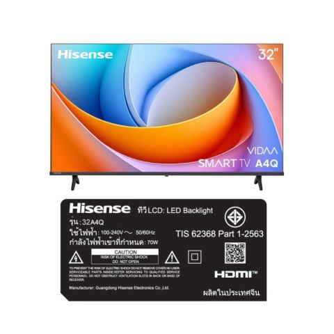 Hisense ทีวี A4Q สมาร์ททีวี 32 นิ้ว VIDAA HD LED รุ่น 32A4Q ปี 2025 ในราคา 5,499.00 บาท ตัวเลือกที่ลงตัวสำหรับห้องนอน ห้องนั่งเล่นขนาดเล็ก หรือมุมโปรดของคุณ ด้วยขนาดกะทัดรัดแต่ให้ภาพคมชัดระดับ HD สีสันเป็นธรรมชาติ และเสียงสมจริงรอบทิศทาง พร้อมระบบสมาร์ททีวี VIDAA ใช้งานง่าย เปิดดูคอนเทนต์โปรดได้สะดวกทุกวัน