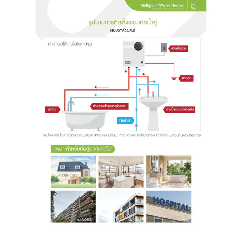 เหมาะสำหรับใช้งาน: อ่างอาบน้ำ/อ่างน้ำวน, ห้องครัว, บ้านพักอาศัย, คอนโด, อพาร์ทเม้นท์, โรงแรม, โรงพยาบาล และสถานพยาบาลต่างๆ