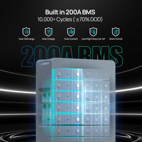 BMS: ในตัว รองรับกระแสสูงสุด 200A พร้อมระบบป้องกันครบ
