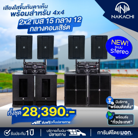 ชุดลำโพง / ชุดเครื่องเสียงกลางแจ้ง ระบบ Stereo 2x2 ครบชุดพร้อมฟัง ออกแบบมาเพื่อให้เสียงดังชัด กระหึ่ม และครอบคลุมพื้นที่ เหมาะสำหรับงานกลางแจ้ง งานกิจกรรม งานเลี้ยง ร้านอาหาร/คาเฟ่ หรือใช้เป็นชุดเครื่องเสียงประจำเวทีขนาดย่อม ให้มิติแบบสเตอริโอซ้าย-ขวา แยกชิ้นดนตรีชัด เพิ่มอรรถรสทั้งการฟังเพลงและการใช้งานพูดประกาศ