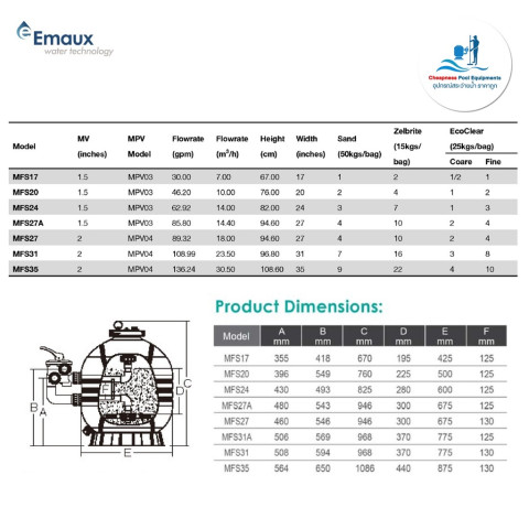 ถังกรองสระว่ายน้ำ EMAUX MFS Series (Side Mount) ถังกรองทราย ราคา 22,800.00 บาท ตัวช่วยสำคัญสำหรับระบบกรองสระที่ต้องการน้ำใส ลดสิ่งสกปรกสะสม และดูแลง่าย เหมาะทั้งสระบ้านและสระเชิงพาณิชย์ ด้วยโครงสร้างถัง HDPE แข็งแรง ทนแรงดัน และมาพร้อมอุปกรณ์ใช้งานพร้อมติดตั้ง