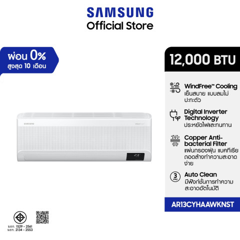 Samsung เครื่องปรับอากาศ 12,000BTU/hr WindFree Copper AirConditioner Wall-mount - Anti-Bacterial Cu Filter (AR13CYHAAWKNST) ทางเลือกสำหรับบ้านและคอนโดที่ต้องการความเย็นสบายแบบมีระดับ พร้อมระบบกรองอากาศที่ช่วยลดการสะสมของแบคทีเรีย ให้คุณพักผ่อนได้อย่างมั่นใจในทุกวัน