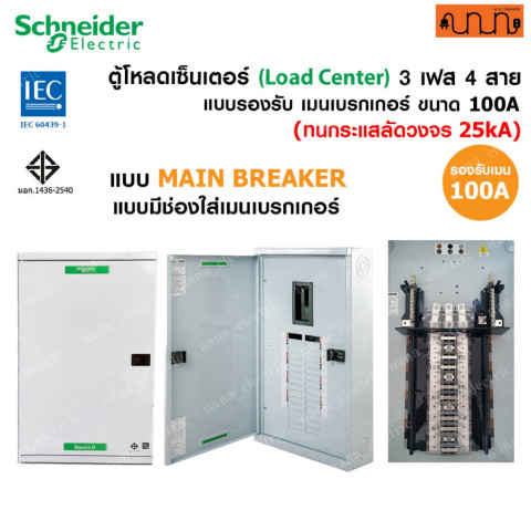 ตู้โหลดเซ็นเตอร์สำหรับระบบไฟ 3 เฟส 4 สาย ออกแบบมาเพื่อการจัดการวงจรไฟฟ้าอย่างเป็นระเบียบ ปลอดภัย และติดตั้งง่าย รองรับเมนเบรกเกอร์เฟรม 100A พร้อม GND Bar ภายในตู้ เหมาะสำหรับบ้านขนาดใหญ่ อาคารพาณิชย์ และโรงงานที่ต้องการตู้เมนคุณภาพจาก Schneider Electric (Square D)