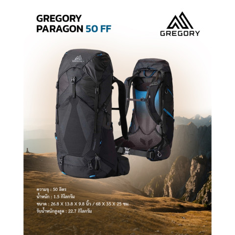 Gregory Paragon 50 FF Alpine Black (50L) กระเป๋าเป้เดินป่าน้ำหนักเบา ดีไซน์อเนกประสงค์ที่พร้อมลุยได้ทุกทริป ตั้งแต่แบกขึ้นเขา เดินทางหลายวัน ไปจนถึงทริปที่ต้องการความคล่องตัวสูง มาพร้อมระบบโครงหลัง FreeFloat ที่ช่วยให้การแบกกระชับ เคลื่อนไหวตามร่างกาย และยัง ปรับความยาวหลัง (Torso Length) ได้ เพื่อความพอดีเฉพาะตัว เพิ่มความสบายเมื่อแบกหนัก พร้อมช่องหลักที่เปิดได้ถึง 3 ทาง ช่วยจัดของและหยิบใช้งานสะดวกกว่าที่เคย
