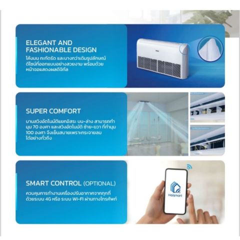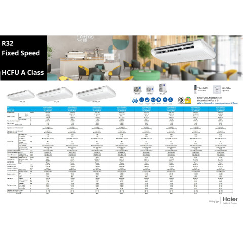 HAIER แอร์ไฮเออร์ แขวนใต้ฝ้า/ตั้งพื้น รุ่น HCFU Fixed Speed (R32) เบอร์ 5 ทางเลือกสำหรับบ้าน ร้านค้า ออฟฟิศ หรือพื้นที่ขนาดใหญ่ ที่ต้องการความเย็นกระจายทั่วถึง ติดตั้งได้ยืดหยุ่นทั้งแบบแขวนใต้ฝ้าและตั้งพื้น มาพร้อมระบบกระจายลมอัตโนมัติ 4 ทิศทาง และแผงฟิลเตอร์คุณภาพสูง ช่วยยกระดับความสบายและคุณภาพอากาศในทุกวัน
