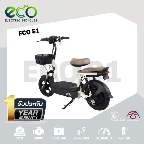 รถจักรยานไฟฟ้า EM MOTOR รุ่น ECO S1 (มอเตอร์ 500 วัตต์) สีครีม/น้ำตาล ราคา 12,927.00 บาท — รถไฟฟ้าจากแบรนด์ไทยที่ขับง่าย ประหยัด และคุ้มค่า เหมาะกับการใช้งานในชีวิตประจำวันทุกเพศทุกวัย ดีไซน์กะทัดรัด คล่องตัว ไม่ใช้น้ำมัน และสามารถ ถอดแบตออกมาชาร์จนอกตัวรถได้ พร้อมระบบกุญแจ/รีโมทแบบสมาร์ท เพิ่มความสะดวกและความปลอดภัยในการใช้งาน