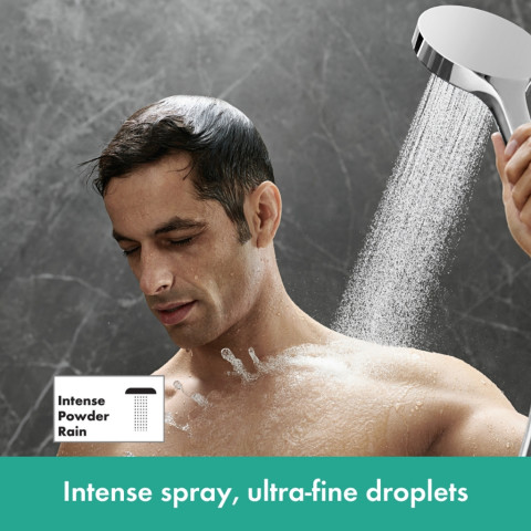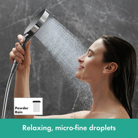 สัมผัสประสบการณ์สายน้ำแบบใหม่ด้วย PowderRain โหมดสเปรย์เอกลักษณ์ที่ปล่อยละอองน้ำเนียนละเอียดนับพันหยด โอบล้อมร่างกายอย่างนุ่มนวล ช่วยให้ผ่อนคลายสบายผิว พร้อมเปลี่ยนโหมดได้ทันทีด้วยปุ่ม Select ใช้งานง่ายแม้มือเปียก