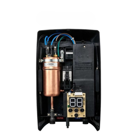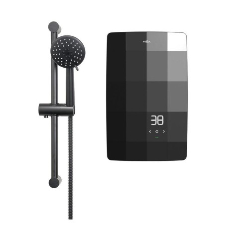 MEX เครื่องทำน้ำอุ่น 4500W รุ่น CRAVE45E(NE) ดีไซน์สีดำ Sapphire Black เรียบหรู ทันสมัย ให้คุณอาบน้ำอุ่นได้อย่างสบายใจด้วยระบบควบคุมอุณหภูมิแบบอิเล็กทรอนิกส์ที่ปรับได้แม่นยำ พร้อมระบบความปลอดภัยครบ เหมาะสำหรับบ้านและคอนโดที่ต้องการทั้งความสวยงามและความมั่นใจในการใช้งานทุกวัน