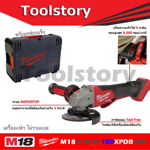 Milwaukee เครื่องเจียรไร้สาย สวิทซ์เซฟตี้ M18 FSAGV100XPDB-0X0 เครื่องมือระดับมืออาชีพสำหรับงานเจียร ตัด แต่งผิวโลหะได้คล่องตัว ด้วยขนาดหินเจียร 4 นิ้ว ใช้งานสะดวกในพื้นที่แคบ ลดข้อจำกัดเรื่องสายไฟ เหมาะทั้งงานช่างหน้างาน งานซ่อมบำรุง และงานติดตั้งที่ต้องการความรวดเร็วและความปลอดภัยสูง