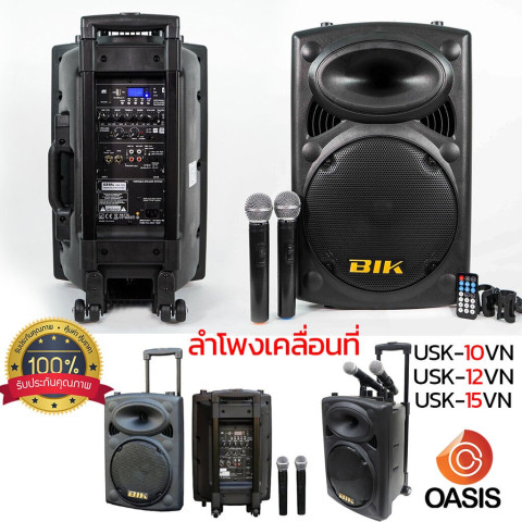 มีส่งด่วน [รวม VAT] ลำโพงเคลื่อนที่ BIK ซีรีส์ USK (USK-10VN / USK-12V / USK-15V-BT) ตู้ลำโพงอเนกประสงค์แบบล้อลาก พร้อมไมค์ลอย เหมาะสำหรับงานพูด งานสอน แอโรบิค อีเวนต์ หน้าร้าน โรงเรียน วัด และงานกิจกรรมกลางแจ้งที่ต้องการความดังชัด เคลื่อนย้ายง่าย ใช้งานสะดวกด้วยแบตเตอรี่ชาร์จในตัวและมือจับพร้อมล้อ